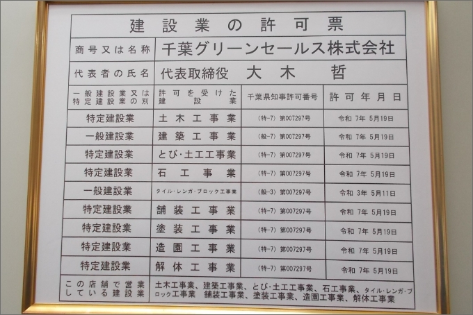 - 千葉県知事許可(般-3)(特-7)(般-7)第7297号